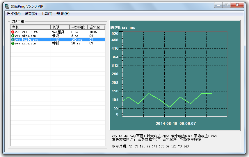 相比而言,超级Ping对于网络监测更专业一些,对网络的检测是并发式的,实时性更好。
